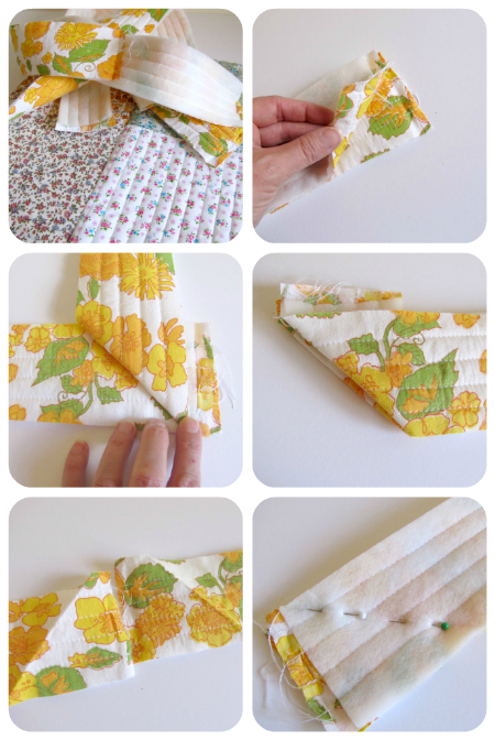 • Continue your way around until all four strips are sewn.  The last corner is just a matter of butting the two ends up to one another at the 45 degree angle until they meet.
